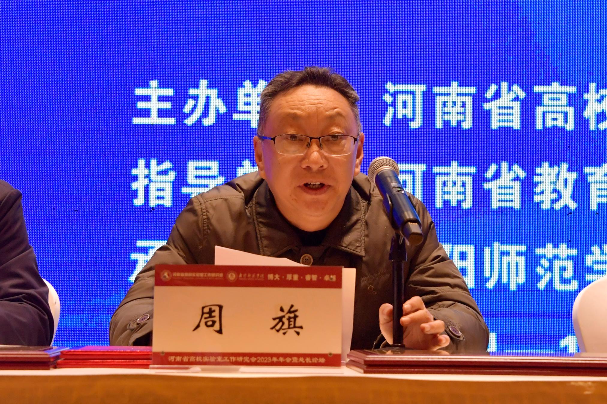 本网讯(郑清岭/文 胡新悦 张琳瑶/图)12月8—10日,河南省高校实验室工作研究会2023年年会暨处长论坛在南阳召开,来自河南省教育厅高教处、郑州大学等102所高校主管实验室的职能部门、河南省科研仪器共享服务中心等单位相关负责人150余人参加会议。新葡萄官网副校长周旗出席会议,开幕式由河南省高校实验室研究会常务副理事长兼秘书长马国杰主持。