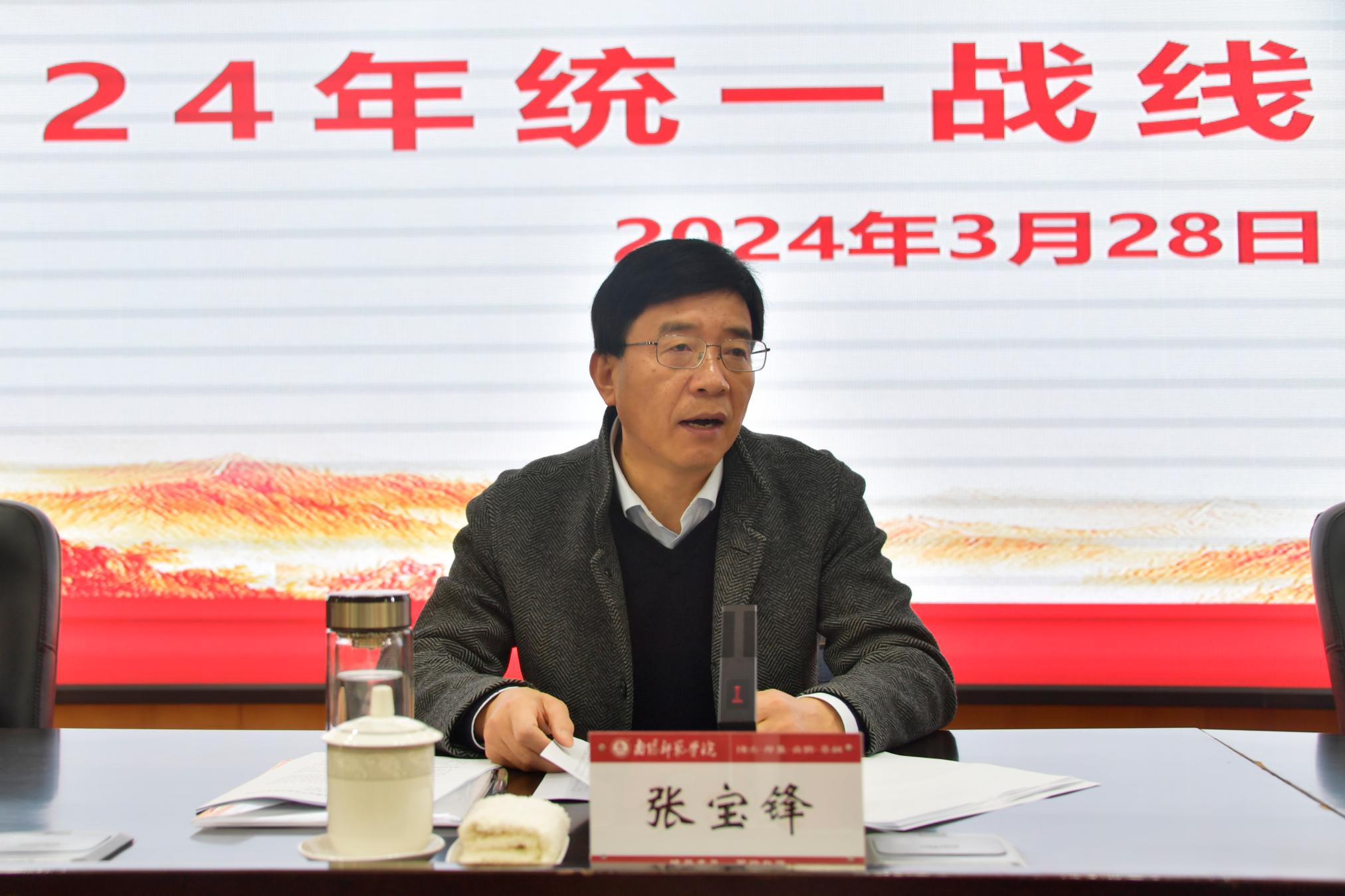 校党委书记张宝锋对新葡萄官网2023年统战工作进行了回顾,分析了当前面临的形势,并就2024年统战各项工作进行了安排部署。他指出,2023年,学校党委坚持以习近平新时代中国特色社会主义思想为指导,深入学习贯彻习近平总书记关于做好新时代党的统一战线工作的重要思想,扎实推进统战重点工作,取得了显著成绩,学校蝉联“河南省高校统战工作示范单位”称号,学校党委工作案例成功入选全省高校党建和统战工作创新典型案例汇编,荣获2023年度全市统战工作突出贡献奖并在大会上做典型发言。