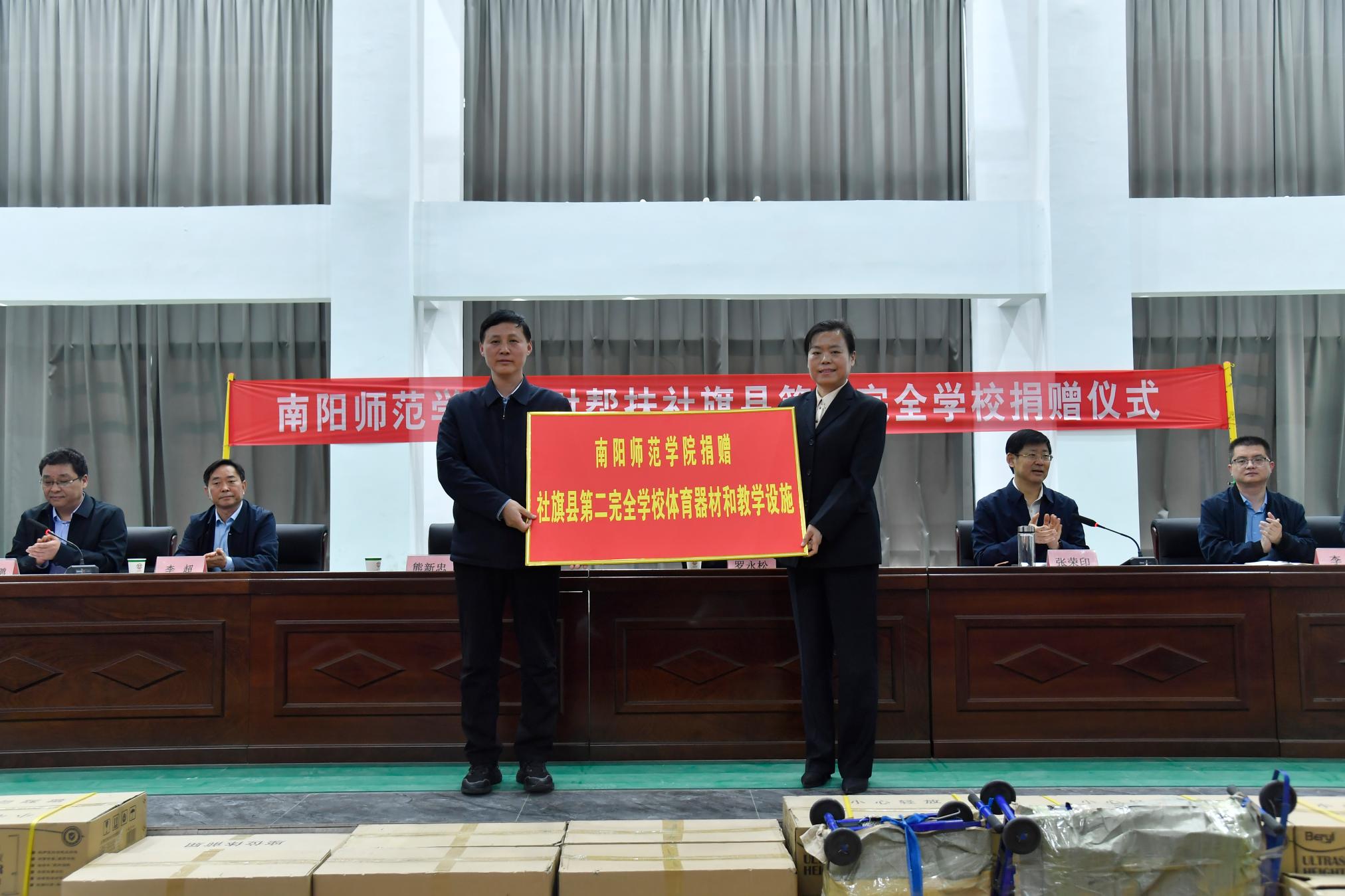 罗永松一行出席了对社旗县第二完全学校的捐赠仪式。张荣印对罗永松一行表示诚挚的欢迎,对学校长期给予社旗的大力支持表示衷心感谢。张荣印介绍了2018年以来南阳师院对社旗县的校地帮扶成果,并展望了未来双方进一步深入合作的美好愿景。罗永松介绍了新葡萄官网的办学情况和发展目标,对社旗县第二完全学校的学生提出殷切期望,并表示新葡萄官网会结合社旗县经济社会发展的实际需求,在人才培养、科技创新、平台建设等方面不断深化校地合作。