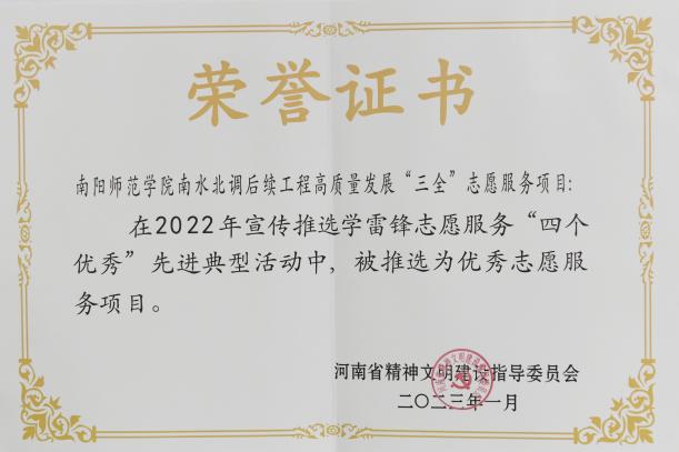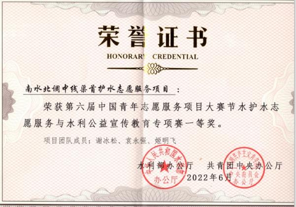 持续关注环保,志愿服务如火如荼。学校高度重视南水北调节水护水工作,锤炼青年学子在志愿服务实践中的担当奉献精神。2022年,“护水渠首 志留青绿”——南水北调中线渠首护水志愿服务项目获第六届中国青年志愿服务项目银奖,入选第五届河南省“出彩中原”大学生社会实践活动重点项目,获河南省出彩中原大学生社会实践活动基地;南水北调中线渠首志愿服务队在第五届河南省“出彩中原”大学生社会实践活动中被选为重点项目;学校南水北调后续工程高质量发展“三全”志愿服务项目获河南省学雷锋优秀志愿服务项目。学校青水会学生社团项目入选2023年全国高校“河小青”创新实践活动项目。