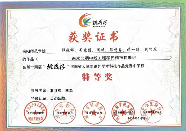 坚持以赛促育,人才培养硕果累累。学校立足学科优势,依托大学生科技创新竞赛,着力开展资源与环境工程领域、水利工程领域高层次技术人才本土化培养,近年来,学生在各级各类学科竞赛中屡获佳绩,先后获得全国青年科普创新实验暨作品大赛总冠军、全国工程机器人大赛特等奖、创青春大学生创业大赛国家级银奖等国家级奖项600余项,其中8项南水北调工程相关项目在“挑战杯”赛事中获奖。