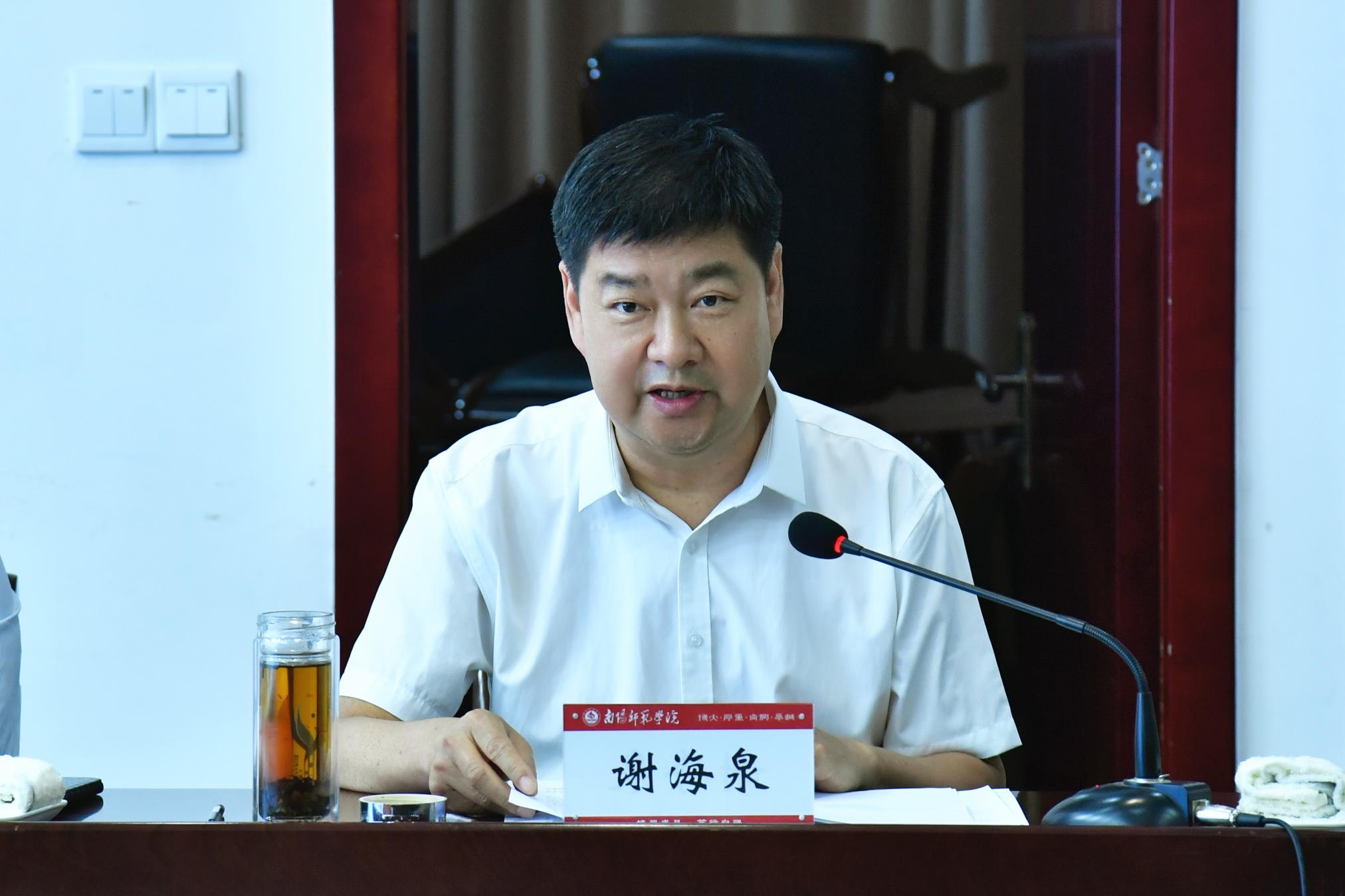 本网讯(郭欣/文 张琳瑶 张子昂/图)6月24日下午,新葡萄官网举行2024年度河南省高等教育教学改革研究与实践重大项目开题论证会。新葡萄官网党委书记张宝锋、校长罗永松、副校长谢海泉出席开题论证会。南开大学首届教育教学杰出贡献奖获得者张伟刚教授、河南师范大学教育学部部长罗红艳教授、郑州航空工业管理学院教务处处长高长银教授、洛阳师范学院研究生处处长苏小燕教授,新葡萄官网发展规划处处长贾虎教授,教育科学学院院长李辉教授受邀担任开题报告评议专家。新葡萄官网宣传部、研究生处、教务处等职能部门、各二级学院负责人、项目组成员参加。会议由谢海泉主持。
