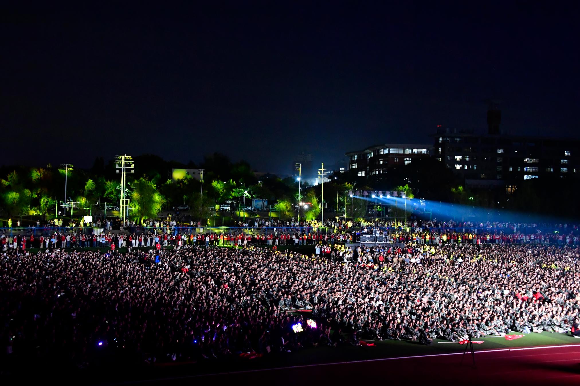 本网讯(杨眉/文 冯一珺 李雯 杨静慧 刘馥涵 卢薇婷/图)团结凝聚力量,奋斗铸就伟业。9月27日晚,由党委宣传部、校团委、公共艺术中心主办的“扬帆起航正当时 风华正茂筑辉煌”庆祝中华人民共和国成立75周年暨2024级迎新晚会在中区田径场举行。校党委书记张宝锋,校纪委书记、监察专员刘守勇出席,相关部门负责同志参加,各学院师生代表、2024级全体军训新生现场观看。