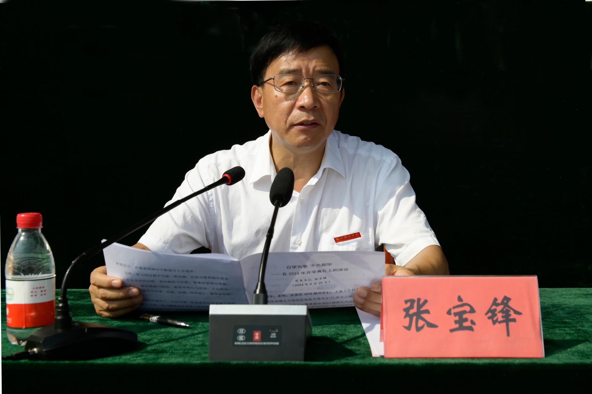 张宝锋在开学典礼上讲话。他代表全校师生对2024级新同学加入南阳师院,成为新的“卧龙学子”,表示祝贺和欢迎。张宝锋简要介绍了学校的历史底蕴、办学理念、办学成效和发展追求,并勉励同学们要“以学为要、不负韶华”,矢志成为担当民族复兴大任的时代新人。一要学而为国,勇担使命,把个人理想融入到国家和民族的事业中,在“青春有为、强国有我”中创造出属于青年一代的辉煌。二要学而为师,行为世范,从教育家精神中不断汲取成长力量,不断擦亮学校师范办学的“金字招牌”。三要学而为用,脚踏实地,始终保持知行合一、经世致用的信念,在实践中经风雨、见世面,奋勇争先,竞相出彩。四要学而为己,至善致远,自觉做社会主义核心价值观的坚定信仰者、积极传播者、模范践行者,不断提升自己的人生境界。他希望同学们将对真善美的追求融入到学习生活全过程,努力拥抱更有高度、更有境界、更有质量的人生,在中国式现代化、中华民族伟大复兴进程中建功立业,贡献力量。(编审 席晓丽)
