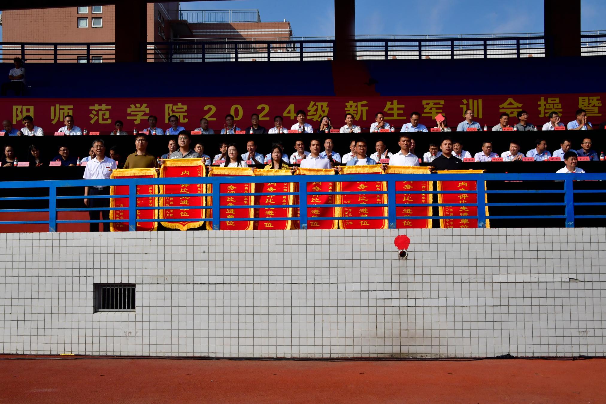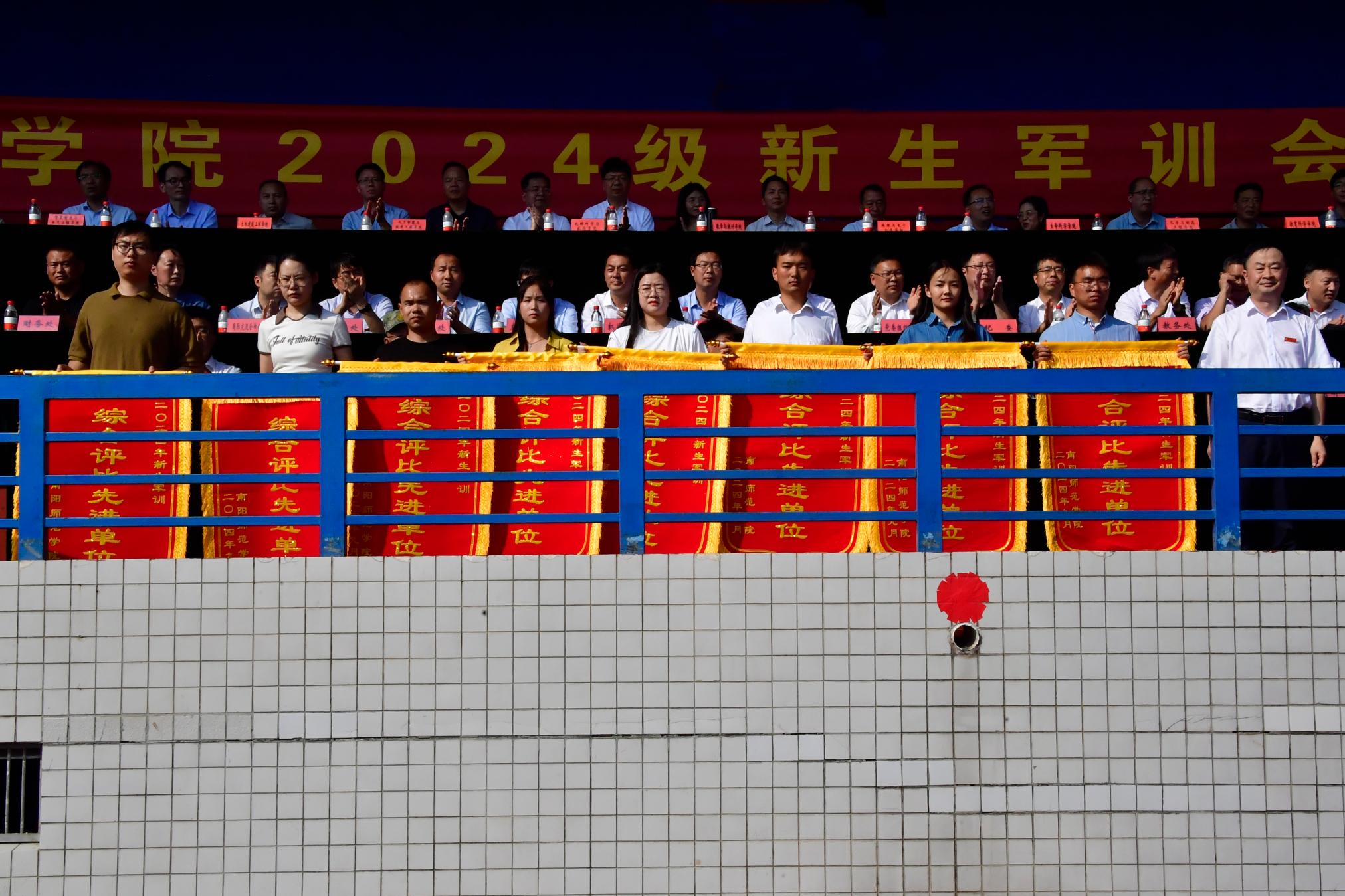 校党委书记张宝锋向优秀教官和优秀指导员颁发荣誉证书,校长罗永松向军训报道先进集体和军训综合评比先进集体颁发锦旗,校纪委书记、监察专员刘守勇向队列训练先进集体和内务整理先进集体颁发锦旗。