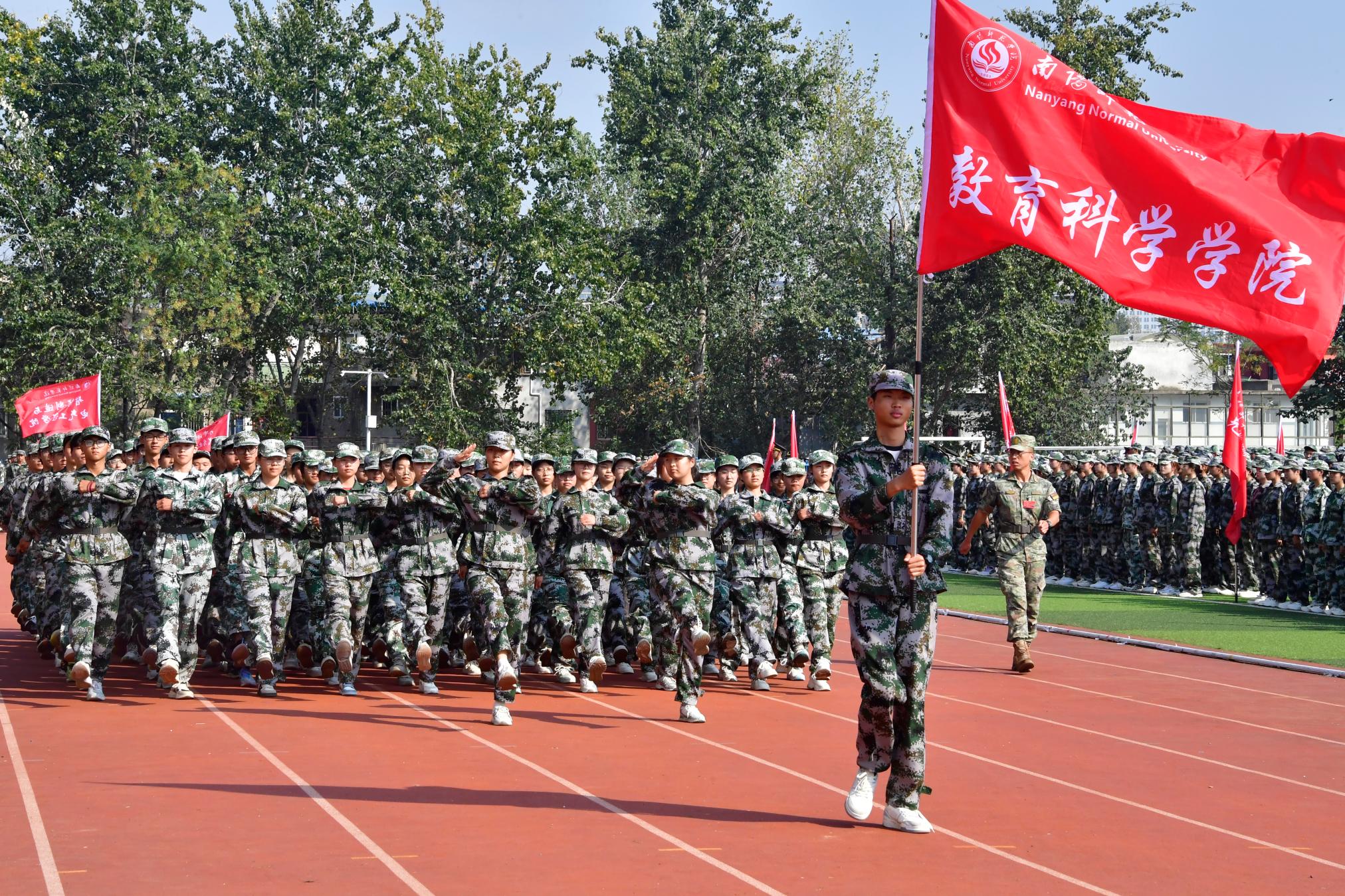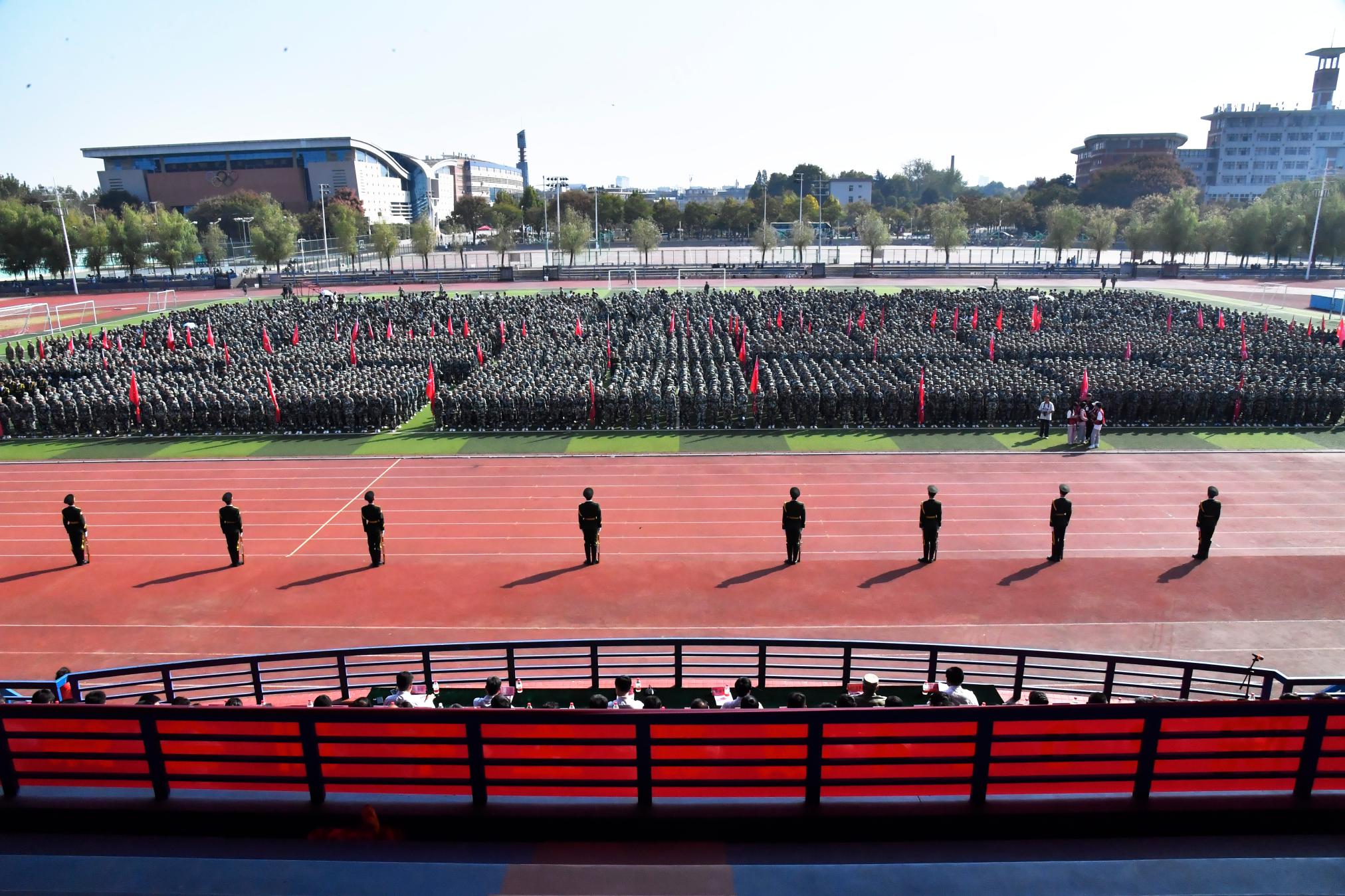 上午9点整,军训会操正式开始。标兵连为大家展示了格斗术与队列训练成果。各学院连队依次走过主席台前接受检阅,队列整齐,步伐稳健,口号响亮,展现了卓有成效的军训成果和昂扬向上的精神风貌。