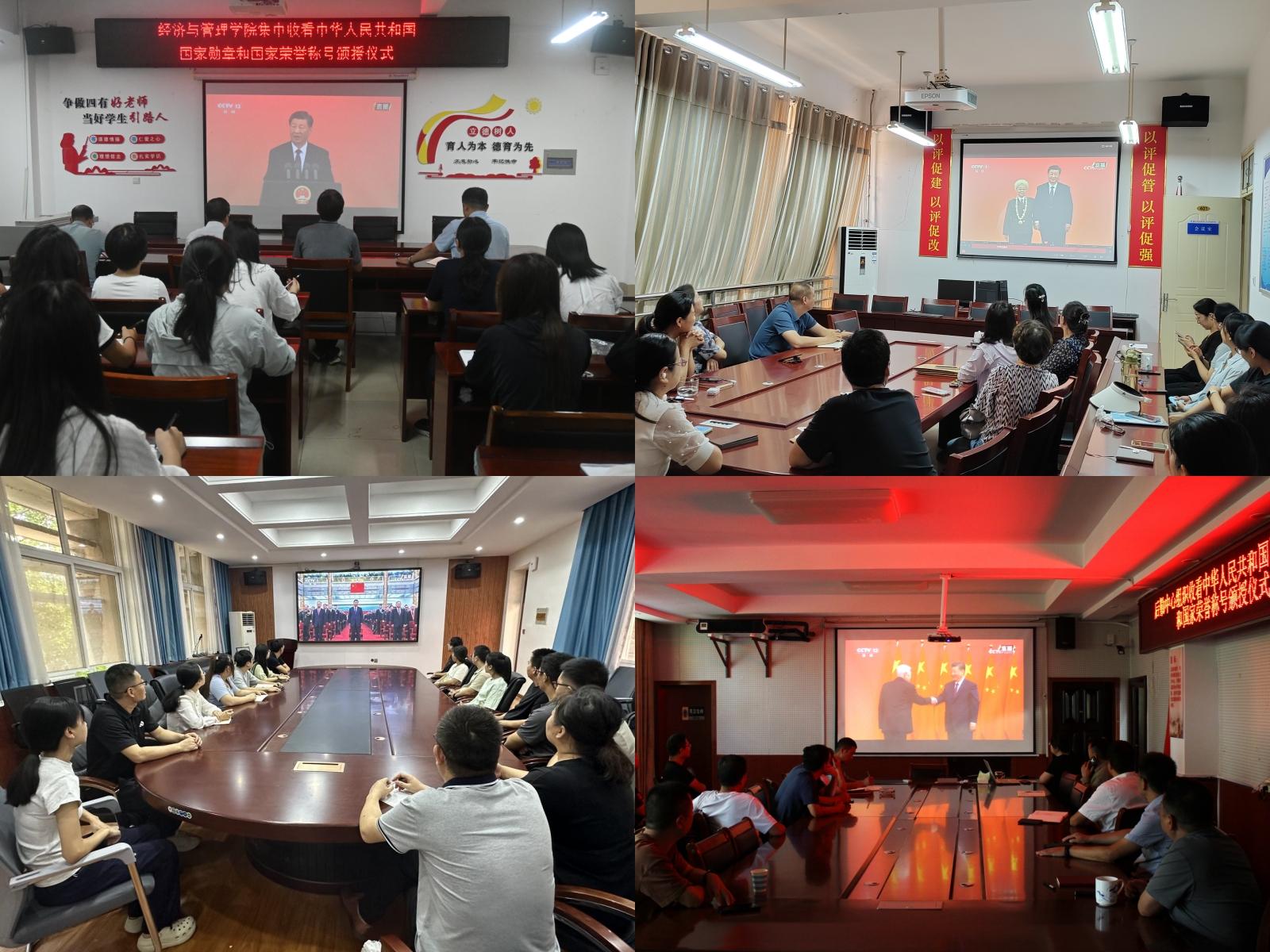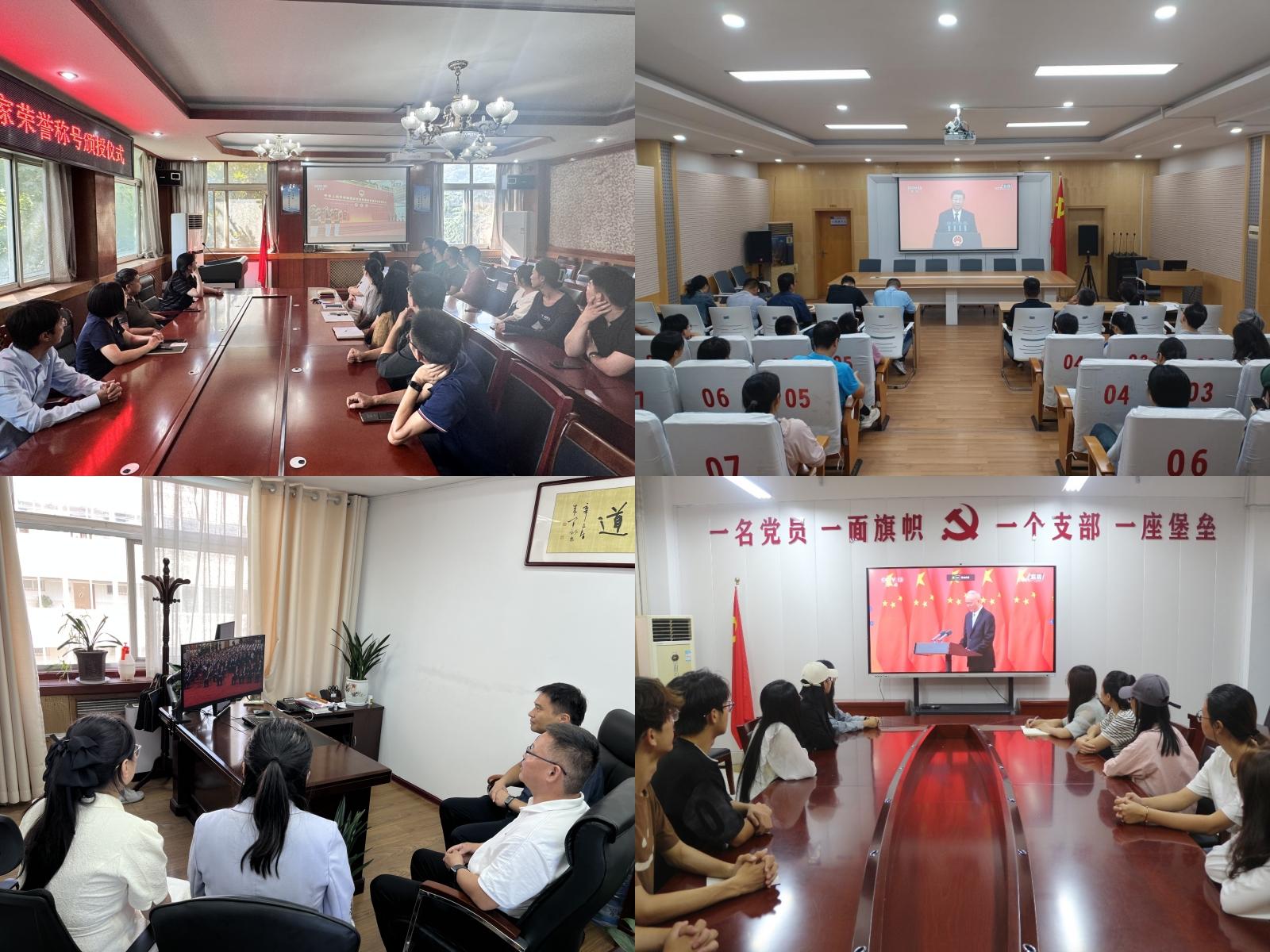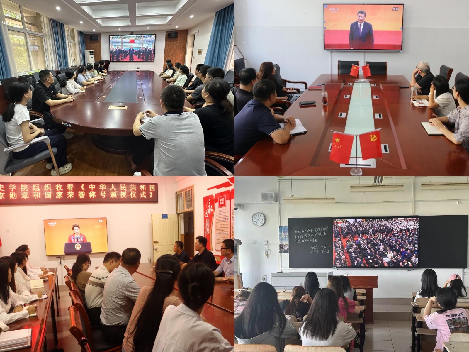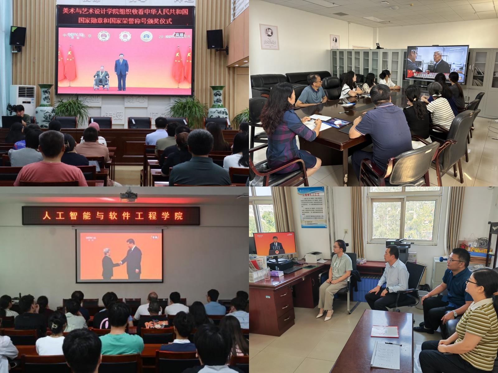 本网讯(通讯员 秦婧妤)9月29日上午10时,中华人民共和国国家勋章和国家荣誉称号颁授仪式在人民大会堂隆重举行。中共中央总书记、国家主席、中央军委主席习近平向国家勋章和国家荣誉称号获得者分别授予“共和国勋章”“友谊勋章”和国家荣誉称号奖章并发表重要讲话。学校党委组织召开理论学习中心组学习会,收听收看颁授仪式直播;各基层党委、党总支师生收听收看学习,认真学习习近平总书记重要讲话精神。