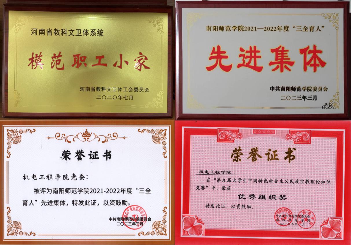 学院党委始终充分发挥榜样引领力量,抓班子谋大局、抓管理建机制、抓教育强队伍、抓思想聚人心、抓稳定促和谐、抓品牌创业绩,以高质量党建推动学院高质量发展。学院党委先后被授予新葡萄8883官网AMG先进基层党组织、河南省高校先进基层党组织、河南省教科文卫系统“五好教工小家”、河南省“巾帼建功”先进集体、河南省高校基层党组织统战工作示范单位、新葡萄8883官网AMG“三全育人”先进集体等。学院党委多次组织红色教育主题党日活动,教工支部积极参与党员志愿服务活动,教工第一党支部荣获新葡萄8883官网AMG先进党支部,被授予河南省高校样板党支部,入选河南省高校“双带头人”教师党支部书记工作室建设单位。
