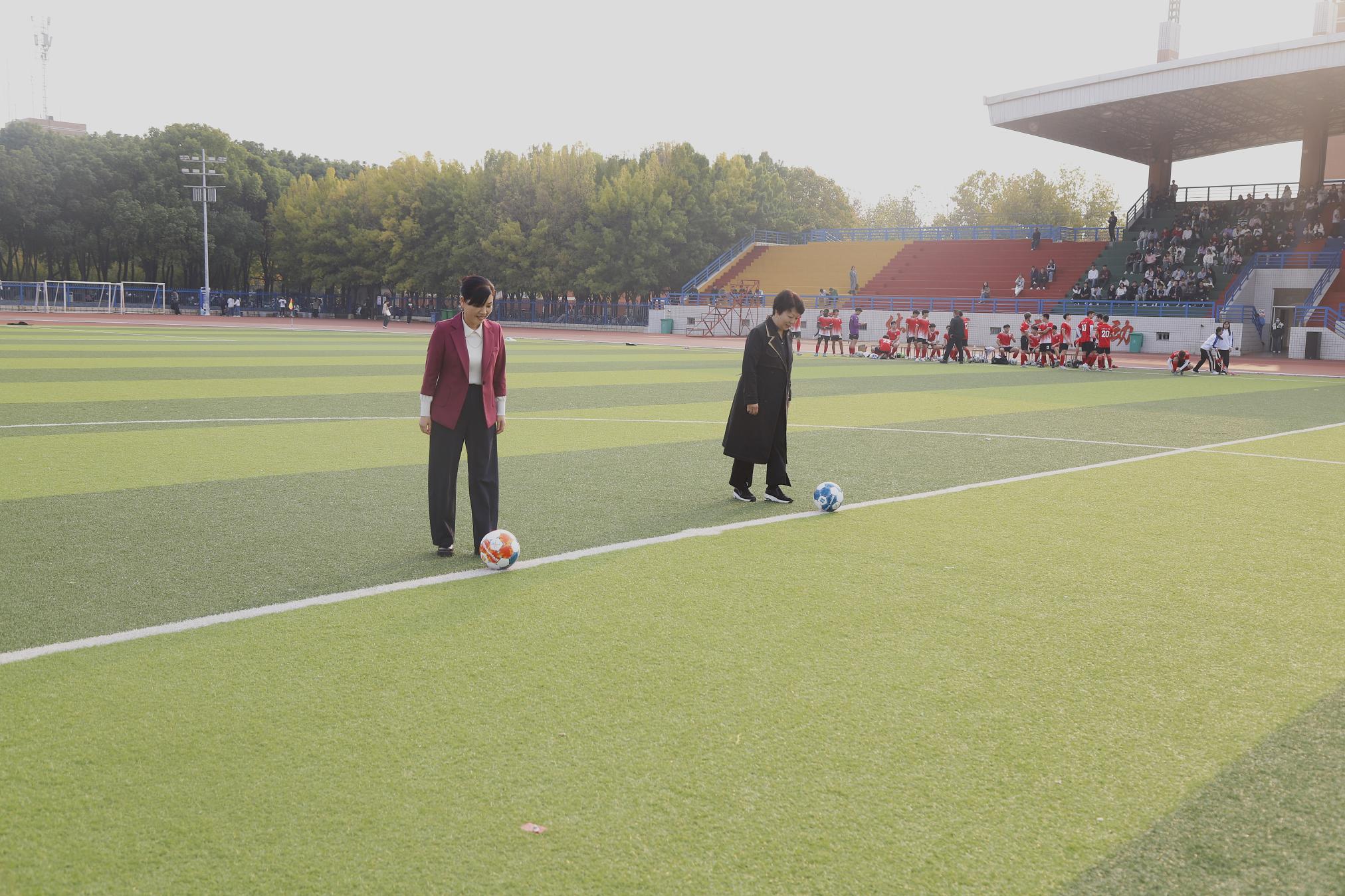 2南阳理工学院副校长高芳放、新葡萄官网副校长王岩为比赛开球