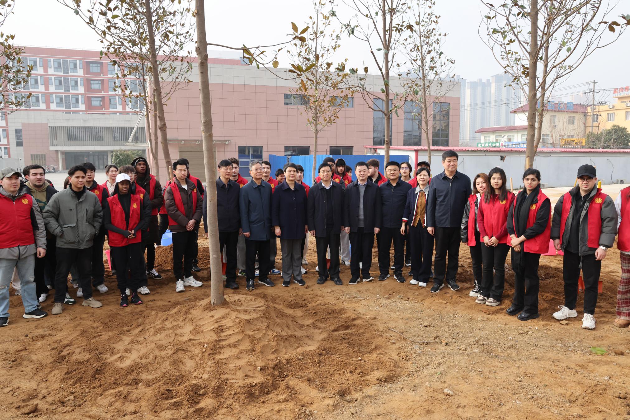 本网讯(丁建芳/文 孟翔 黄珍珍/图)春回大地万物苏,“植”此青绿正当时。3月12日上午,校领导张宝锋、罗永松、孟静雅、刘守勇、刘红林、熊新忠、王岩、谢海泉带领机关单位负责同志、留学生志愿者代表、学生志愿者代表,来到学生与外籍教师公寓南侧,参加“履行植树义务,共建美丽中国”为主题的植树活动,为生态校园建设植绿添青。