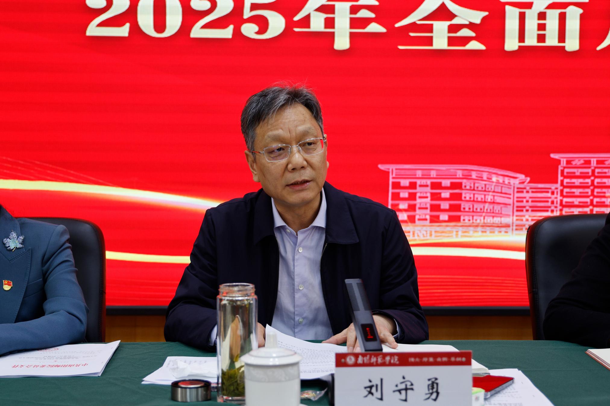校纪委书记、监察专员刘守勇传达二十届中央纪委四次全会、十一届省纪委五次全会精神,客观分析新葡萄官网全面从严治党工作的形势任务,并对2025年纪检监察工作作出安排部署。一是落实“立德树人”根本任务,把办好人民满意的教育作为政治监督的出发点和落脚点;二是全面加强纪律建设,持续巩固拓展党纪学习教育成果;三是深入推进风腐同查同治,深入贯彻落实中央八项规定精神;四是从严开展校内巡察,持续发挥利剑高悬震慑作用;五是夯实全面从严治党主体责任,持续凝聚管党治党强大合力;六是持续强化队伍建设,打造忠诚干净担当纪检监察铁军。