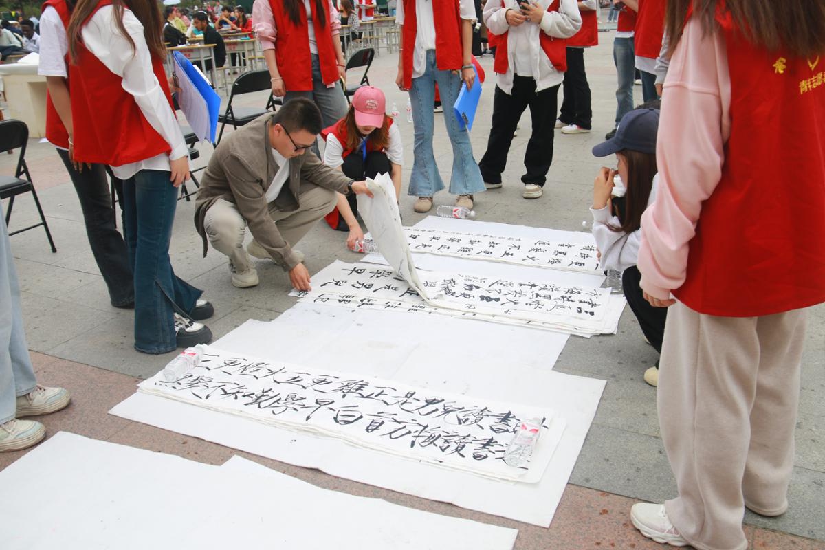 本网讯(杨眉/文 张锡哲 许琪 彭露露/图)为进一步巩固学校师范教育根基,厚植师范文化底色,4月9日下午,由教师发展中心、校团委主办,美术与艺术设计学院承办的“培根铸魂固根本,启智润心育新人”第四届师范文化节“三笔字”书写大赛决赛在逸夫楼东广场举行。校党委副书记刘红林出席,教师发展中心、校团委、美术与艺术设计学院负责同志参加。