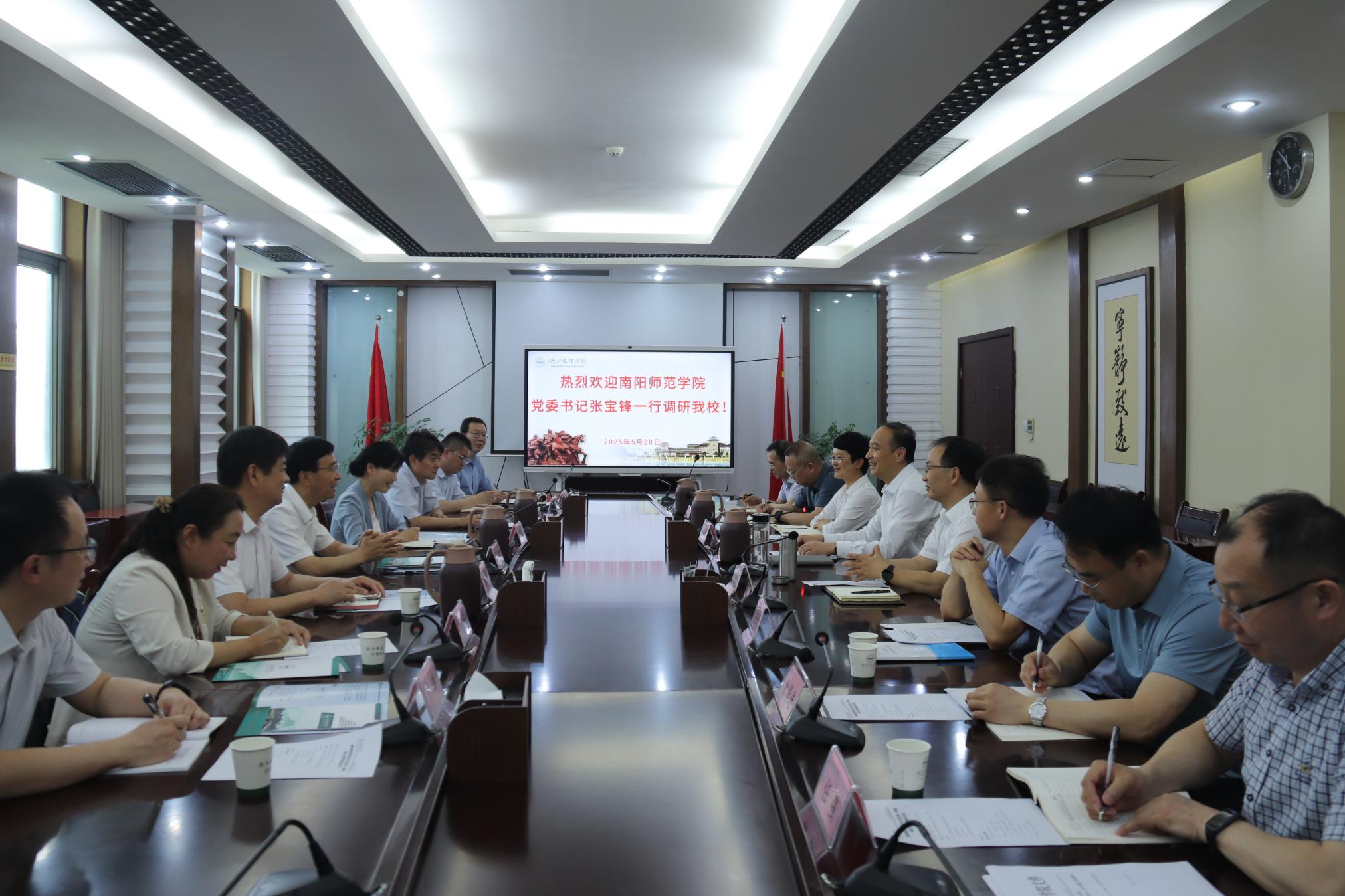 张宝锋对杜国锋的热情接待表示感谢。他表示,两校地缘相连、文化相近、人缘相亲,在办学历史、办学理念及发展任务方面有很多相似之处,在共同发展中结下了深厚友谊。他指出,湖北文理学院近年来在转型发展、人才引育、产教融合及产才融合等方面取得了显著成效,积累了很多值得新葡萄官网借鉴学习的宝贵经验。他希望双方进一步加强交流互鉴、开展务实合作,共同探索教育科技人才一体化发展的实践路径,以及高层次人才校企共引共用的创新措施,加快推动教育链、人才链与产业链、创新链的深度融合,为区域经济高质量发展注入澎湃动能。