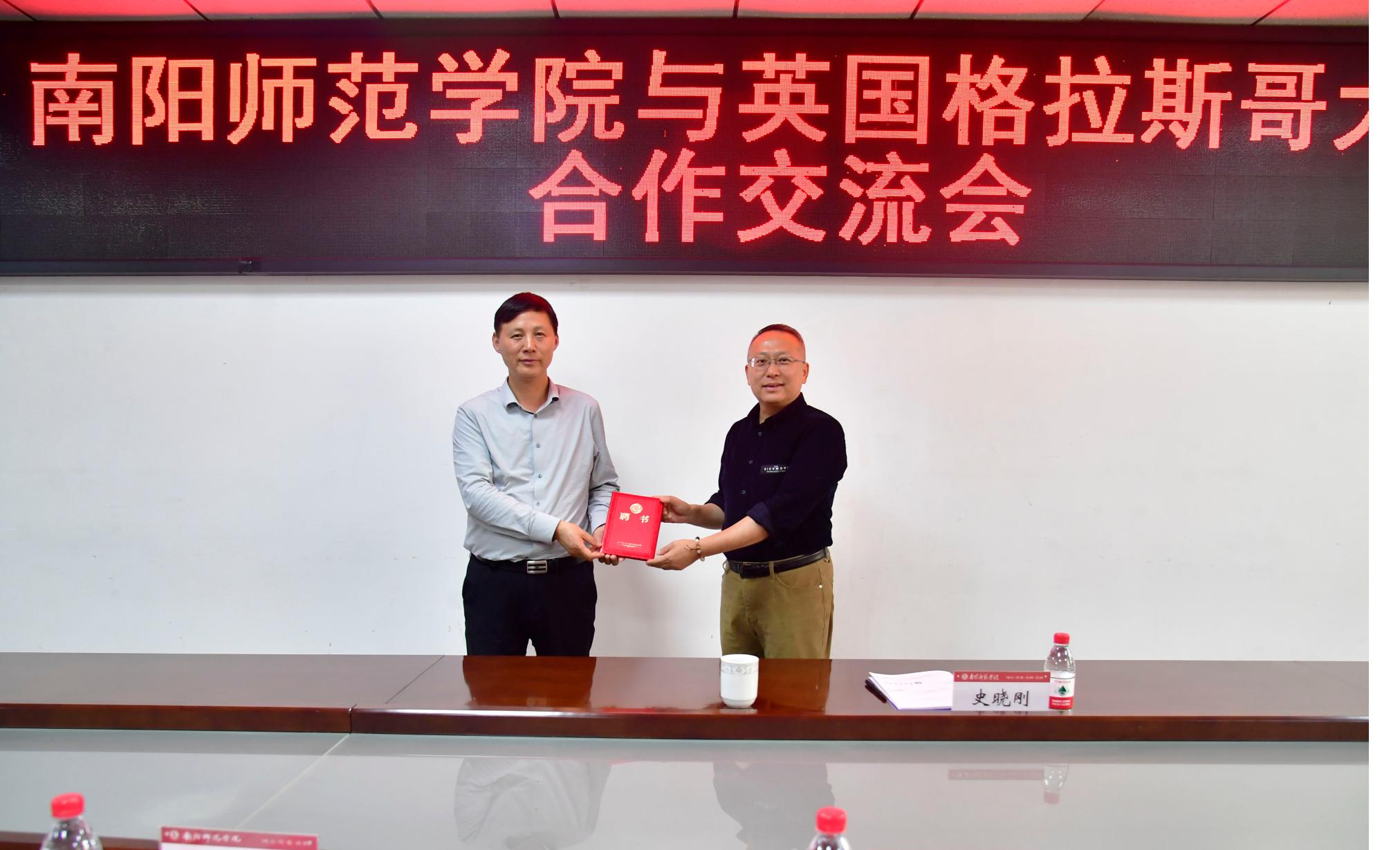 本网讯(通讯员 李磊 图/文)为深化国际视野,拓展合作渠道,5月28日下午,新葡萄8883官网AMG与英国格拉斯哥大学合作交流会议在办公大楼一楼西会议室举行。英国格拉斯哥大学史晓刚教授来访交流,副校长熊新忠出席会议并代表学校向史晓刚教授颁发特聘教授证书。科技处、研究生处、国际交流合作处以及水资源与现代农业学院相关负责人和教师参加座谈。
