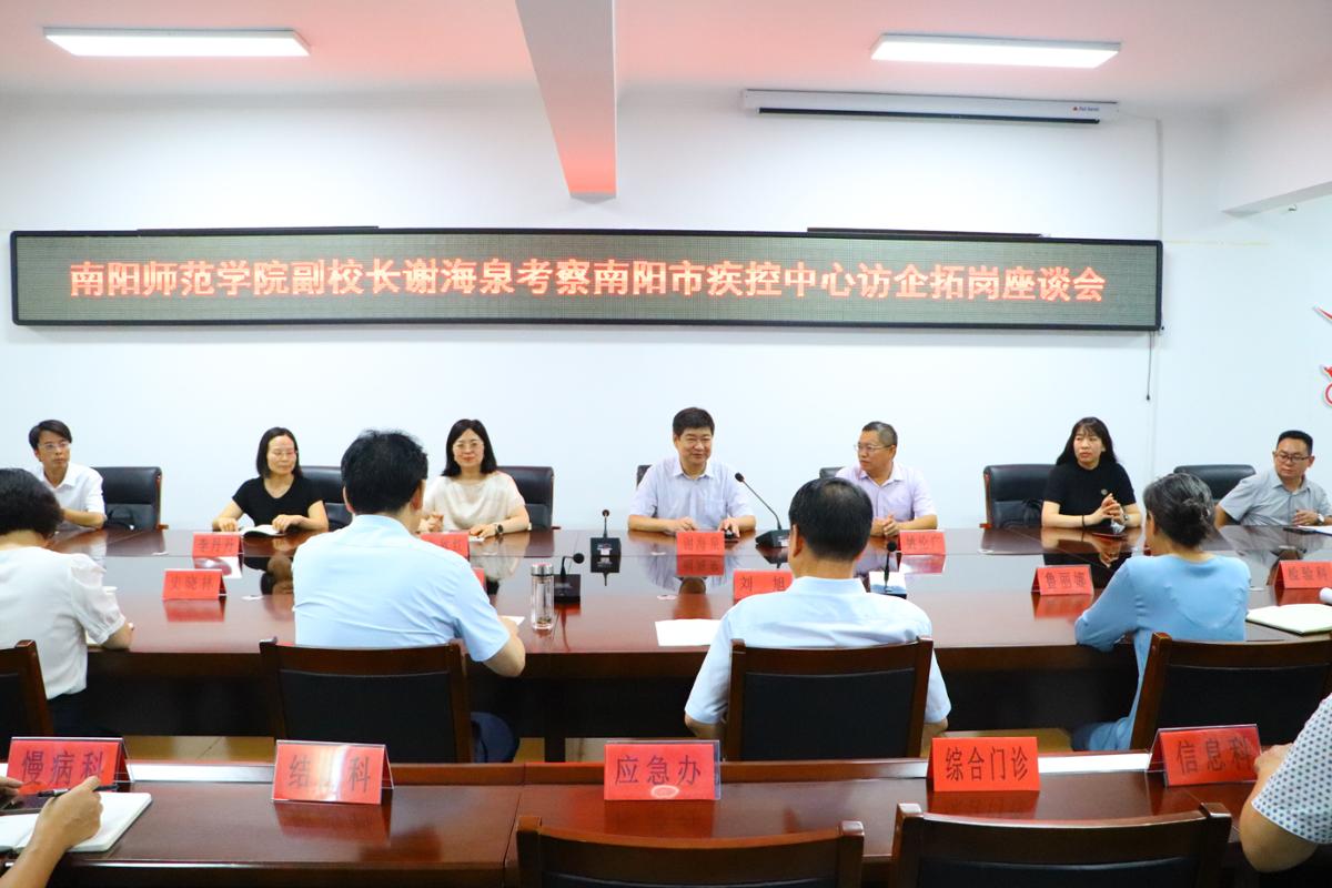 本网讯(通讯员 王申 图/文)7月16日上午,副校长谢海泉带领研究生处、生命科学学院和化学与制药工程学院相关负责同志及教师代表赴南阳市疾控中心开展访企拓岗促就业暨研究生联合培养工作站揭牌仪式。