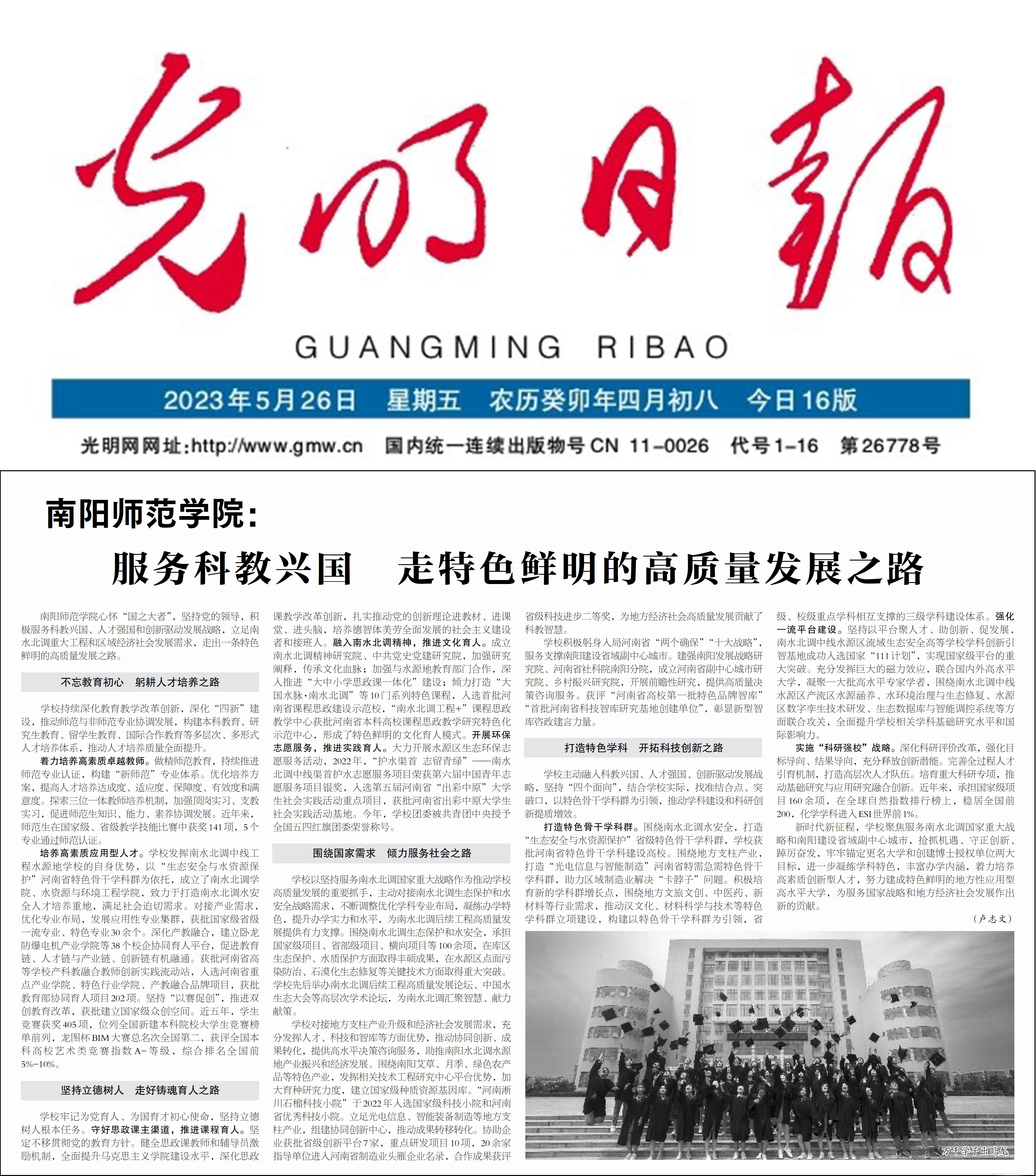 2023年5月26日,《光明日报》第8版刊发新葡萄官网党委书记卢志文的文章《新葡萄8883官网AMG:服务科教兴国 走特色鲜明的高质量发展之路》,全文如下: