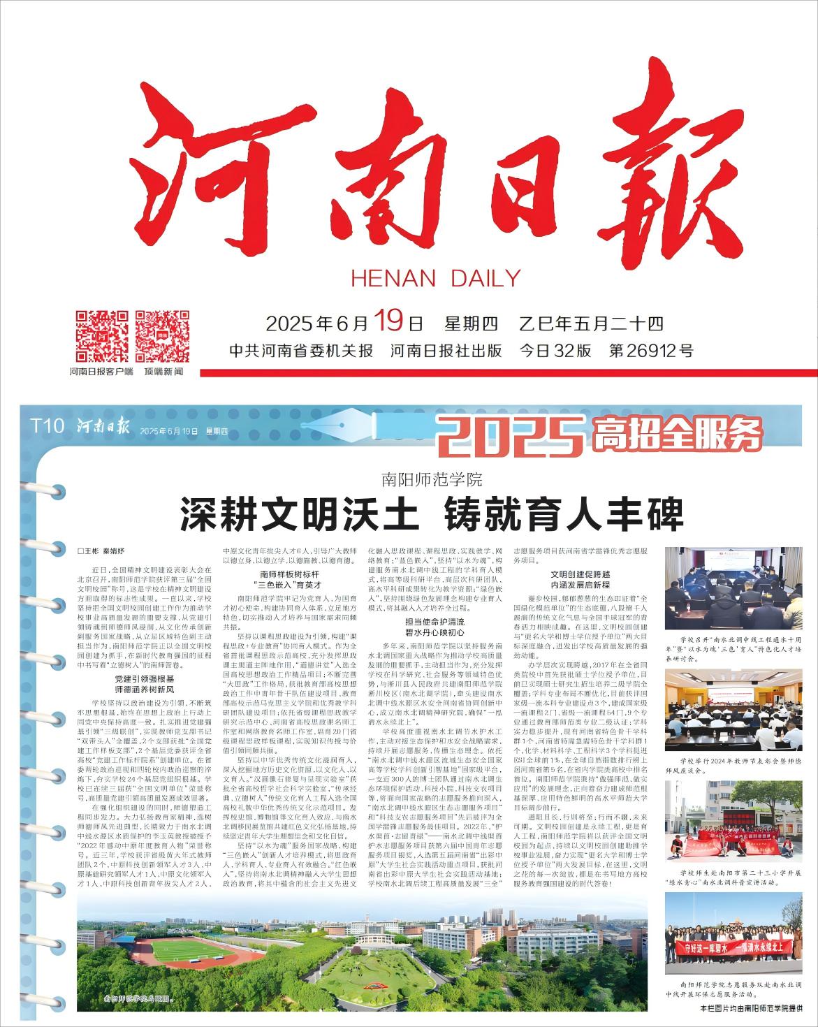 2025年6月19日,《河南日报》T10版刊发文章《新葡萄8883官网AMG:深耕文明沃土 铸就育人丰碑》,全文如下: