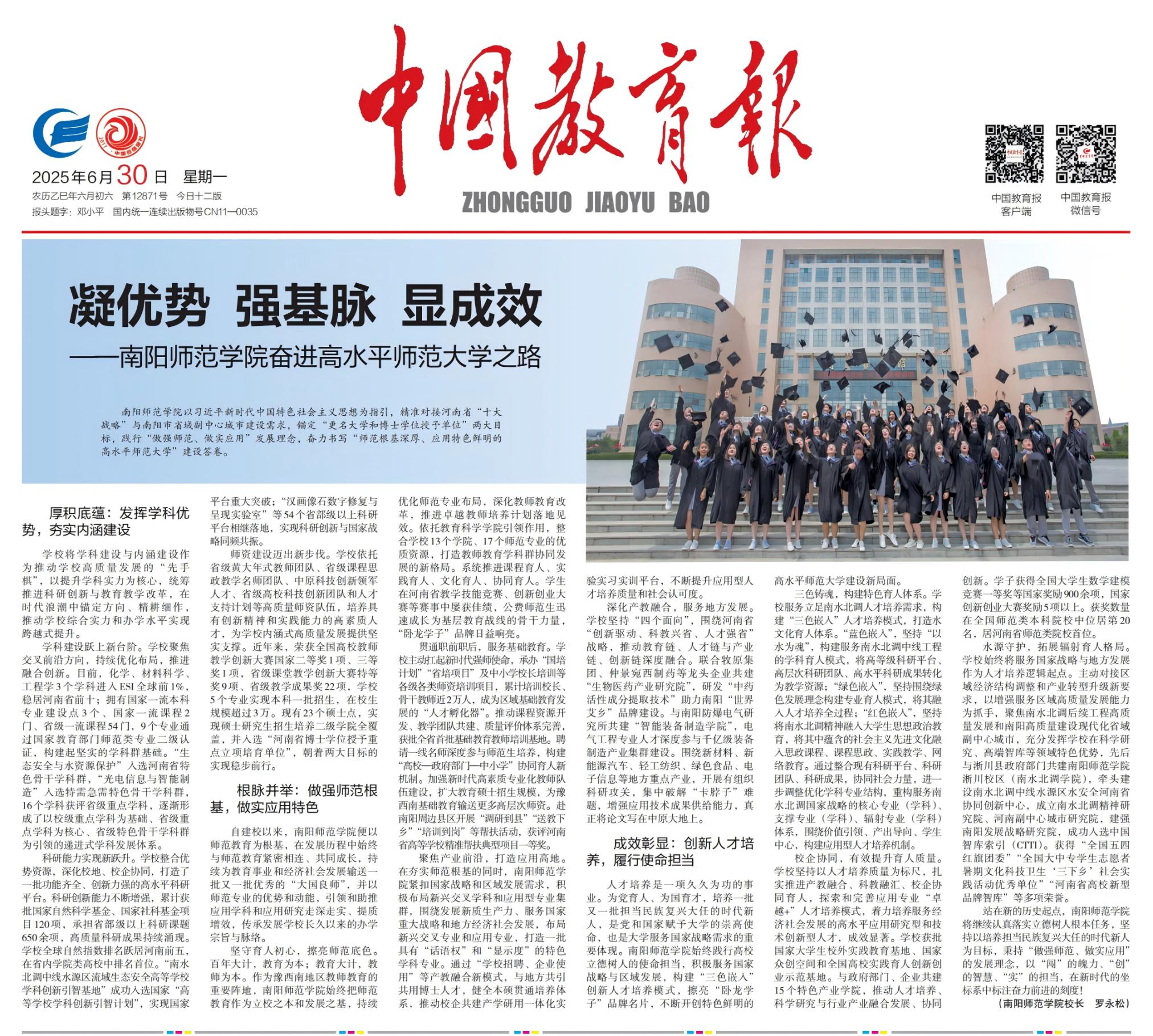 2025年6月30日,《中国教育报》04版刊发新葡萄官网校长罗永松的文章《凝优势 强基脉 显成效——新葡萄8883官网AMG奋进高水平师范大学之路》,全文如下: